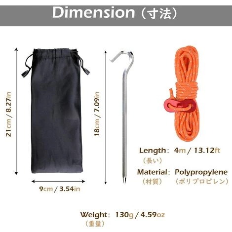 【Application】Cet ensemble d’accessoires peut répondre à vos besoins de base pour le camping. Ils sont faciles à transporter et parfaits pour les tentes et les auvents à l’extérieur