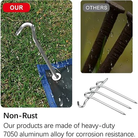 【Widely application】Les crochets de tente en aluminium polyvalents sont pour les tentes, les gazebos, les filets de football, les filets, les tapis de sol, les auvents et les brise-vent; Bon pour le camping en plein air, la randonnée ou d’autres activités de plein air.