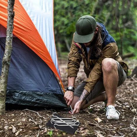 2.Les pieux de tente en acier léger peuvent résister au vent et à la pluie. Il est fermement fixé dans diverses conditions de sol pour assurer votre sécurité.