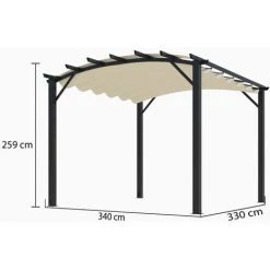 Habrita Pergola Structure Mixte 11,22 M2 – Toile Couleur écru