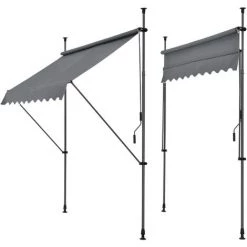Store Banne Téléscopique Acier Polyester 200 X 120 X 200-300 Cm Gris Ardoise [pro.tec]