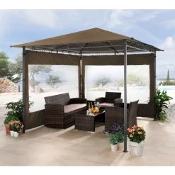 Quick-Star 2 Panneaux Latéraux Avec Fenêtre PE 250x190cm Beige-Gris Pour Gazebo 3x3m