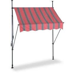 Relaxdays Auvent Pour Balcon, 150 Cm De Large, Hauteur Réglable, Sans Percer, Anti-UV, Gris/rouge