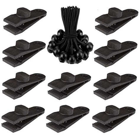 Clip de Bâche & Corde Élastique Matériaux et taille : Clip de bâche sont faits de construction en nylon robuste. Taille: 3.3inch * 1inch*1.18 pouces *0.47inch ; La corde à élastique à billes est faite de cordon élastique en plastique et durable.