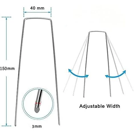 Convient pour la fixation de voiles anti-herbe, de tissu de sol, de grilles de protection de pelouse, de tissu anti-herbe, mais aussi pour la fixation de tuyaux et de câbles dans le sol.