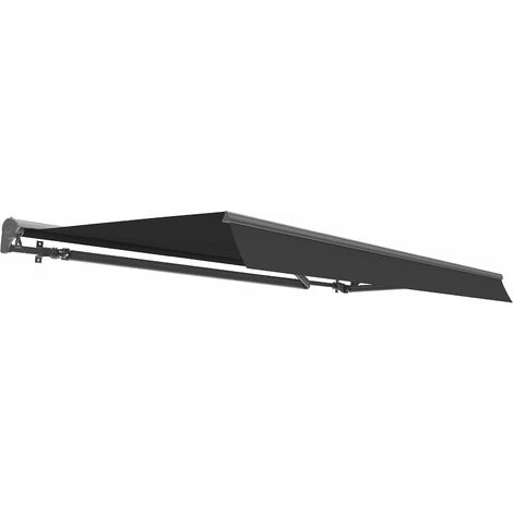 - CARACTÉRISTIQUES TECHNIQUES : Type de Store banne : Motorisé / Type de coffre : Semi coffre / Couleur principale : Gris anthracite / Matière de la toile : 100% polyester + enduis polyuréthane pour l’étanchéité / Densité de la toile : 280g/m² / Structure : Aluminium / Lambrequin : Oui / Lambrequin amovible : Oui / Type de revêtement : Gris foncé / Toile waterproof : Oui / Toile hydrofuge : Oui / Armature : 2 bras / Matière de l’armature : Aluminium / Matière du rouleau : Aluminium / Matière de la barre de torsion : Acier / Matière de la barre de charge : Aluminium / Fixations murales fournies : Oui / Nombre de fixations murales : 2 / Matière des fixations murales : Acier / Télécommande incluse : Oui / Livré avec manivelle débrayable permettant de manœuvrer le store lors de coupure de courant / Kit de fixation murale inclus / montage : le montage se fait à 2, installation facile, notice fournie / Traitement : La structure est traitée anti-corrosion. Finition avec une peinture époxy pour éviter toute trace de rouille. La toile est enduite d’une fine couche de polyuréthane pour la rendre déperlante et est traitée anti UV.
