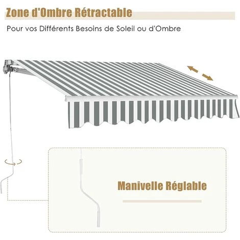 - ★RETRACTION ET DEPLIAGE SANS EFFORT★Vous pouvez rapidement et facilement rétracter ou étendre l’auvent en tournant simplement la manivelle de 1,2 m de long. La banne offre une grande surface de couverture de 3×2,5m, mais peut être entièrement rétractée pour gagner de l’espace et éviter de bloquer les vues.