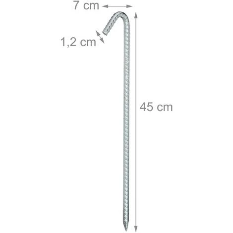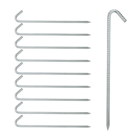 Si un bon ancrage au sol est important pour vous lorsque vous campez sur un sol dur et mou, alors il vous faudra prendre les sardines massives XL en lot de 10. Les ancrages en acier zingué accomplissent leur boulot sans compromis et ne se tordent pas. Enfoncer les sardines sans difficulté dans le sol grâce à leur pointes. Les piquets à tente font environ 45 cm de long et s’adaptent au mieux pour la fixation en particulier des grandes tentes, des auvents ou des pavillons.
