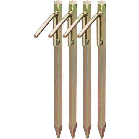 Si un bon ancrage au sol est important pour vous lorsque vous campez sur un sol dur et rocheux, alors il vous faudra les piquets en lot de 4. Les piquets de fixation au sol XL en acier galvanisé accomplissent leur tâche sans flancher et ne se tordent pas. Ils sont adaptés à l’ancrage de grandes tentes et de pavillons sensibles au vent. Les sardines s’enfoncent avec facilité dans le sol grâce à leurs pointes. Les crochets facilitent la tension de la toile.