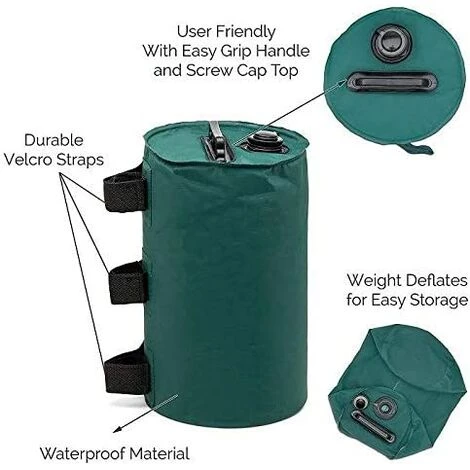 Un sac de poids qui s’adapte à n’importe quel auvent ou tente. Le sac est plus petit lorsqu’il est dégonflé pour un rangement facile.