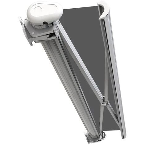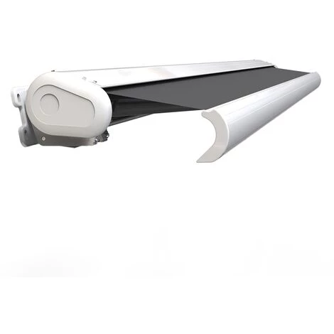 HAPPY GARDEN Store Banne SAULE 3,95 × 3m – Toile Rayée Blanche/grise Et Structure Blanche – Blanc