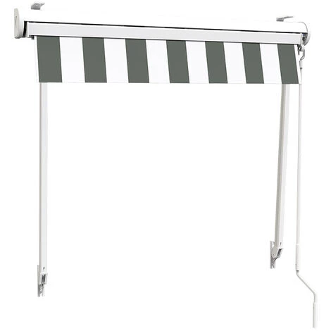 HAPPY GARDEN Store Banne SAULE 3,95 × 3m – Toile Rayée Blanche/grise Et Structure Blanche – Blanc