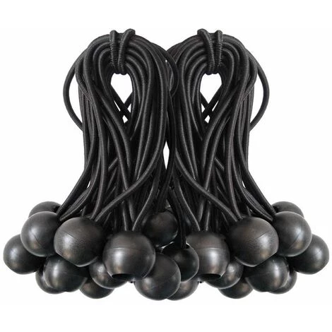 Corde élastique avec boule : noir / blanc, caoutchouc, corde élastique de 10 cm, avec boule de 2,5 cm, durable, résistant aux intempéries.
