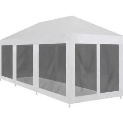 Notre tente de réception avec parois latérales en maille est parfaite pour tous ceux qui veulent avoir une sensation de plein air mais qui ne veulent pas avoir des problèmes avec les insectes lors d’activités en plein air. Cette tente de réception sera idéale pour un grand nombre d’événements en plein air, telles que spectacles, mariages, fêtes, barbecues, festivals, etc. Fabriquée en acier enduit de poudre, cette tente de réception est extrêmement durable. Le revêtement de toiture est en polyéthylène de haute qualité, ce qui le rend résistant à l’eau et aux UV. La tente dispose de huit parois latérales en maille qui vous protègent des insectes nuisibles. L’une des parois latérales a une entrée à fermeture éclair pour un accès facile. La tente de réception est facile à installer avec les accessoires de montage inclus. REMARQUE : ce produit ne doit JAMAIS être utilisé par mauvais temps, tel que vent fort, pluie abondante, neige, tempête, etc.