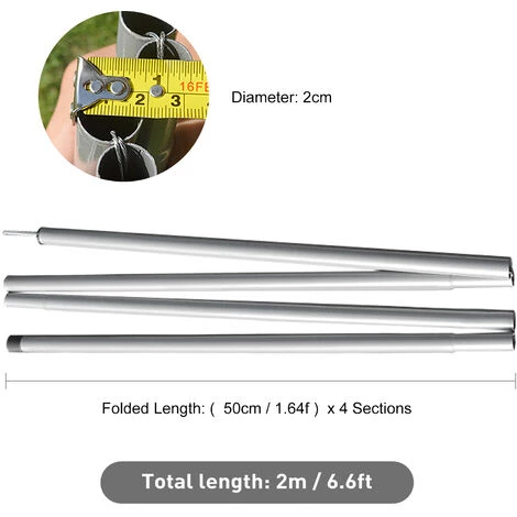 Fonctions multiples, utilisées comme poteaux d’extension de tente, poteaux d’auvent, poteaux d’abri.
