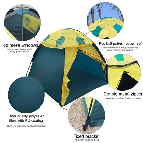 Cette tente pour enfants est fabriquée à partir d’un tissu en polyester doux et d’une fibre à haute résistance, adaptée aux enfants, sûre et durable à utiliser, difficile à casser ou à déformer, longue durée de vie. Il peut accueillir confortablement 2 à 3 enfants. Parfait pour la plage, le pique-nique, le parc ou dans la cour.