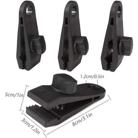 Les clips de bche de tente multifonctions peuvent tre utiliss sur les tentes, les auvents, les bches, les caravanes, les toiles, les couvertures de bateaux, les auvents, les couvertures de piscine, les abris ou dans tout tissu ncessitant des points de support supplmentaires. .