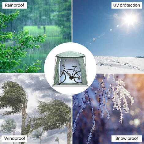 Cette tente imperméable robuste est conçue pour une utilisation quatre saisons, protégeant votre équipement de la lumière du soleil, de la pluie, de la neige, du vent, de la poussière et plus encore. Idéal pour les outils de jardin à long manche, les jouets pour enfants, les tondeuses à gazon, les articles de piscine et autres équipements de plein air. < br />