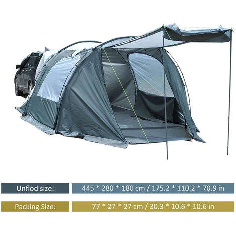 Ce n’est pas seulement une tente, mais aussi un grand auvent. Fabriqué à partir de tissu oxford avec revêtement argenté, bloquant plus de 90 % des rayons ultraviolets ; Revêtement imperméable PU4000mm solide, résistant aux intempéries. Petit volume d’emballage, grande surface développée. Idéal pour le camping, les pique-niques, les fêtes et autres activités de plein air pour 5 à 8 personnes.
