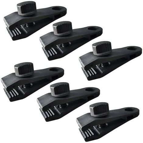 【Matériel】Ce clip de bâche est fabriqué en plastique à haute résistance, ce qui le rend durable et facile à transporter. Évitez les forts battements au vent; il peut donc résister à la force de traction et est difficile à détacher après avoir été fixé à la tente. 【Conception pratique】Pinces de bâche avec mâchoires d’alligator spéciales avec conception de dents, les mâchoires en forme d’engrenage permettent au clip de mordre dans la bâche, il y a un trou à l’extrémité du clip, pratique pour attacher les sangles sur la tente. 【Largement utilisé】 Les clips de bâche de sécurité polyvalents peuvent être utilisés sur une tente, un auvent, une bâche, une caravane, une couverture de bateau, un auvent, une couverture de piscine, un abri ou toute couverture en tissu nécessitant des points de support supplémentaires. 【Facile à utiliser】 Il y a une vis sur le clip pour vous permettre de vérifier l’étanchéité du clip sans endommager la bâche. Vissez la structure de verrouillage, serrez simplement la vis, les clips se verrouillent bien, serrez bien Vous pouvez le visser à la bâche ou au couvercle que vous utilisez, ajuster la force avec la vis 【Meilleur choix】 C’est le meilleur choix pour le camping en plein air, la voile ou pique-niques.