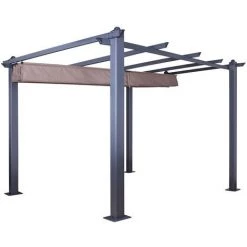 AVRIL PARIS Tonnelle/Pergola Aluminium 3x3m Toile Coulissante Rétractable – Gris Taupe – Hero – Gris