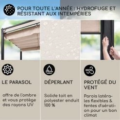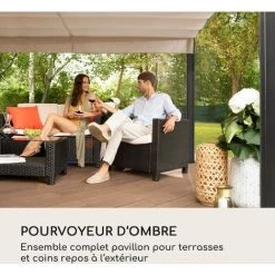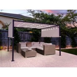 AVRIL PARIS Tonnelle/Pergola En Aluminium 3x4m Toile Coulissante Rétractable – Gris – HAVANA – Gris