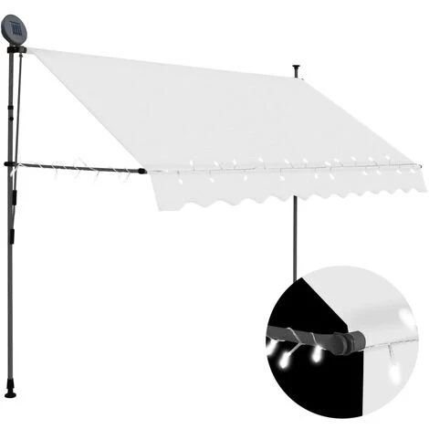 Cet auvent rétractable sera idéal devant la fenêtre, sur la terrasse, le balcon ou dans votre jardin. Cet auvent hydrofuge et anti-salissure et résistant aux UV et aux intempéries est fabriqué en polyester de qualité avec un revêtement PU. Le cadre en acier fort rend l’auvent robuste et durable. L’auvent en polyester facile à nettoyer peut être retiré et lavé. Grâce à la manivelle de la poignée, ce store est rétractable. La hauteur et l’angle du store peuvent également être ajustés. De plus, les lampes LED alimentées par l’énergie solaire permettent d’économiser l’énergie la nuit. L’auvent est facile à assembler. Cet auvent est le choix idéal pour votre espace de vie extérieur et peut être actionné manuellement.