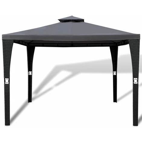 Cette tonnelle est idéale pour tout évènement extérieur, comme des spectacles, mariages, fêtes, barbecues, festivals, ect. Vous pouvez également l’installer dans votre jardin comme un grand parasol pour votre famille et vos invités. Le châssis léger et résistant à la rouille est en acier peint par poudrage. Le design en polyrotin tissé donne à cette tonnelle un look chic et attractif. Le toit en polyester résistant aux UV et à la déchirure est résistant à l’eau et très durable. La construction à double toit permet à l’air de circuler lors des journées chaudes. Cette tonnelle est très durable. Le montage est très facile. Cette tonnelle a des trous dans ses pieds et peut être facilement fixée au sol avec des cordes ou des clous (non inclus dans la livraison). Veuillez noter que nous recommandons de traiter le toit avec un spray imperméable si la tonnelle est soumise à des fortes pluies.