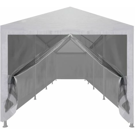 Notre tente de réception avec parois latérales en maille est parfaite pour tous ceux qui veulent avoir une sensation de plein air mais qui ne veulent pas avoir des problèmes avec les insectes lors d’activités en plein air. Cette tente de réception sera idéale pour un grand nombre d’événements en plein air, telles que spectacles, mariages, fêtes, barbecues, festivals, etc. Fabriquée en acier enduit de poudre, cette tente de réception est extrêmement durable. Le revêtement de toiture est en polyéthylène de haute qualité, ce qui le rend résistant à l’eau et aux UV. La tente dispose de dix parois latérales en maille qui vous protègent des insectes nuisibles. Les deux des parois latérales ont une entrée à fermeture éclair pour un accès facile. La tente de réception est facile à installer avec les accessoires de montage inclus. REMARQUE : ce produit ne doit JAMAIS être utilisé par mauvais temps, tel que vent fort, pluie abondante, neige, tempête, etc.