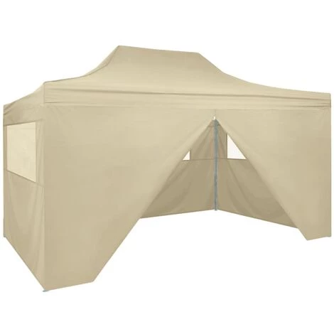 Cette tente pliable sera idéale pour un large éventail d’utilisations en plein air, telles que des spectacles, des mariages, des fêtes, des barbecues, des festivals, etc. Vous pouvez également l’installer dans votre jardin en tant que grand parasol pour votre famille et vos amis. Faite de l’acier très résistant, enduit de poudre, cette tente rétractable est extrêmement durable. Le toit est fabriqué en tissu polyester avec un revêtement PA et est 100 % imperméable à l’eau et aux intempéries. La tente a quatre parois latérales, dont une dispose d’une entrée à fermeture éclair pour un accès facile. Le chapiteau est pliable pour faciliter le rangement et le transport. Les accessoires d’installation tels que les cordes d’attache et les piquets de sol sont inclus dans la livraison et l’assemblage est très facile. REMARQUE : ce produit ne doit JAMAIS être utilisé par mauvais temps, tel que vent fort, pluie abondante, neige, tempête, etc.