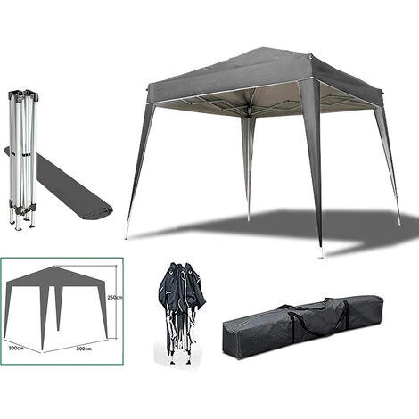 Tente repas de jardin Anthracite 3 x 3 x 2,5 M pliable. Facile à monter et à démonter pour le jardin, la terrasse, le patio ou pour être installé n’importe où, comme la plage, le parc ou la montagne.