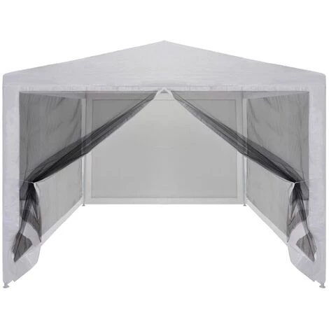 Fabriquée en acier enduit de poudre, cette tente de réception est extrêmement durable. Le revêtement de toiture est en polyéthylène de haute qualité, ce qui le rend résistant à l’eau et aux UV. La tente dispose de quatre parois latérales en maille qui vous protègent des insectes nuisibles. L’une des parois latérales a une entrée à fermeture éclair pour un accès facile. La tente de réception est facile à installer avec les accessoires de montage inclus.