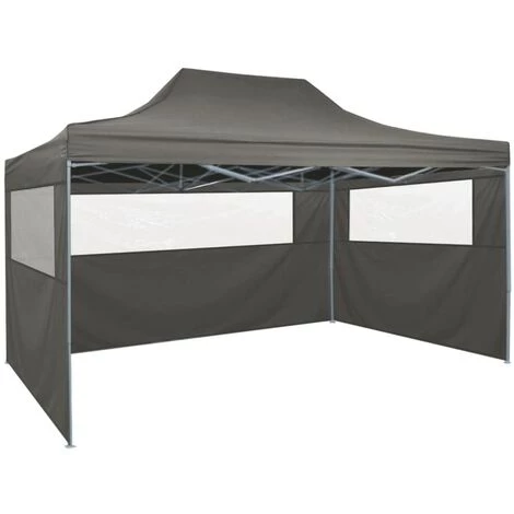 Fabriquée en acier enduit de poudre, cette tente de réception escamotable est extrêmement durable. La couverture de toit est faite de tissu oxford avec un revêtement de PVC, ce qui la rend imperméable et résistante aux UV. La tente a quatre parois latérales, dont l’une avec une entrée à fermeture éclair pour un accès facile. La tente de réception est facile à installer avec les cordes de fixation et les piquets au sol inclus.
