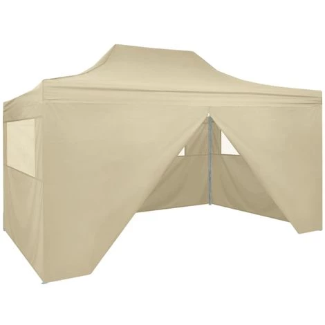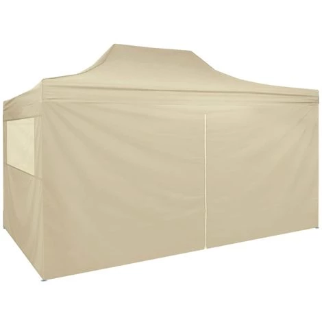 Cette tente pliable sera idéale pour un large éventail d’utilisations en plein air, telles que des spectacles, des mariages, des fêtes, des barbecues, des festivals, etc. Vous pouvez également l’installer dans votre jardin en tant que grand parasol pour votre famille et vos amis. Faite de l’acier très résistant, enduit de poudre, cette tente rétractable est extrêmement durable. Le toit est fabriqué en tissu polyester avec un revêtement PA et est 100 % imperméable à l’eau et aux intempéries. La tente a quatre parois latérales, dont une dispose d’une entrée à fermeture éclair pour un accès facile. Le chapiteau est pliable pour faciliter le rangement et le transport. Les accessoires d’installation tels que les cordes d’attache et les piquets de sol sont inclus dans la livraison et l’assemblage est très facile.
