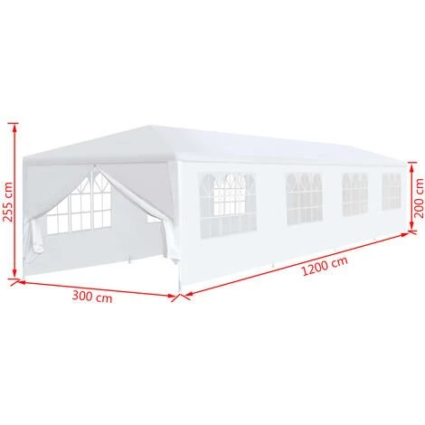 La tente de réception est faite de 100 % de polyéthylène et est résistante aux UV et à l’eau. La tonnelle a 8 panneaux latéraux amovibles, chacun avec fenêtres décoratives et 2 panneaux de porte avec fermetures éclair pour une entrée facile. Ce cadre est fabriqué en acier résistant à la rouille et est donc très durable. L’assemblage est facile.