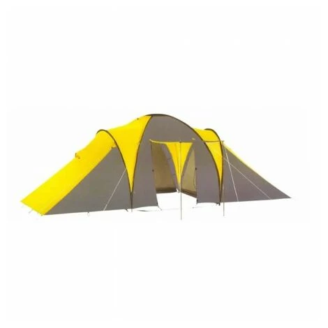 Tenda 3 camere da letto + soggiorno 9 persone Dome9.-Tenda originale per nove persone con tre camere da letto, ideal per viaggi in coppia, in gruppo o prendere i bambini.-Ha una piccola cabina nel mezzo e una tenda anteriore.-Chiusure incluse.-MARCA: WURKO.-Materiale: rafia e nylon.-Dimensioni: 70 x 25 cm piegato, 180 x 210 x 180 + 195 cm spiegati.-Peso: 11500 gr.-Colore: grigio e giallo.-Capacidad per 9 persone.