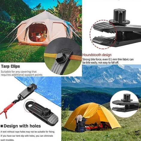 - Application: sont idéales pour être utilisées à la maison ou à l’extérieur. Les pinces de verrouillage sont idéales pour fixer des bâches, des auvents, des tentes, des sacs de couchage, des articles ménagers et des articles pour automobiles. Ce sont des articles idéaux pour le voyage et la maison, installer une tente est essentiel pour le camping, les clips de bâche peuvent bien fixer la tente, afin que vous puissiez profiter des bons moments en plein air avec votre famille.