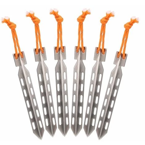 « Les piquets de tente en titane sont super légers et durables, parfaits pour ancrer la tente, les abris, les auvents, etc.